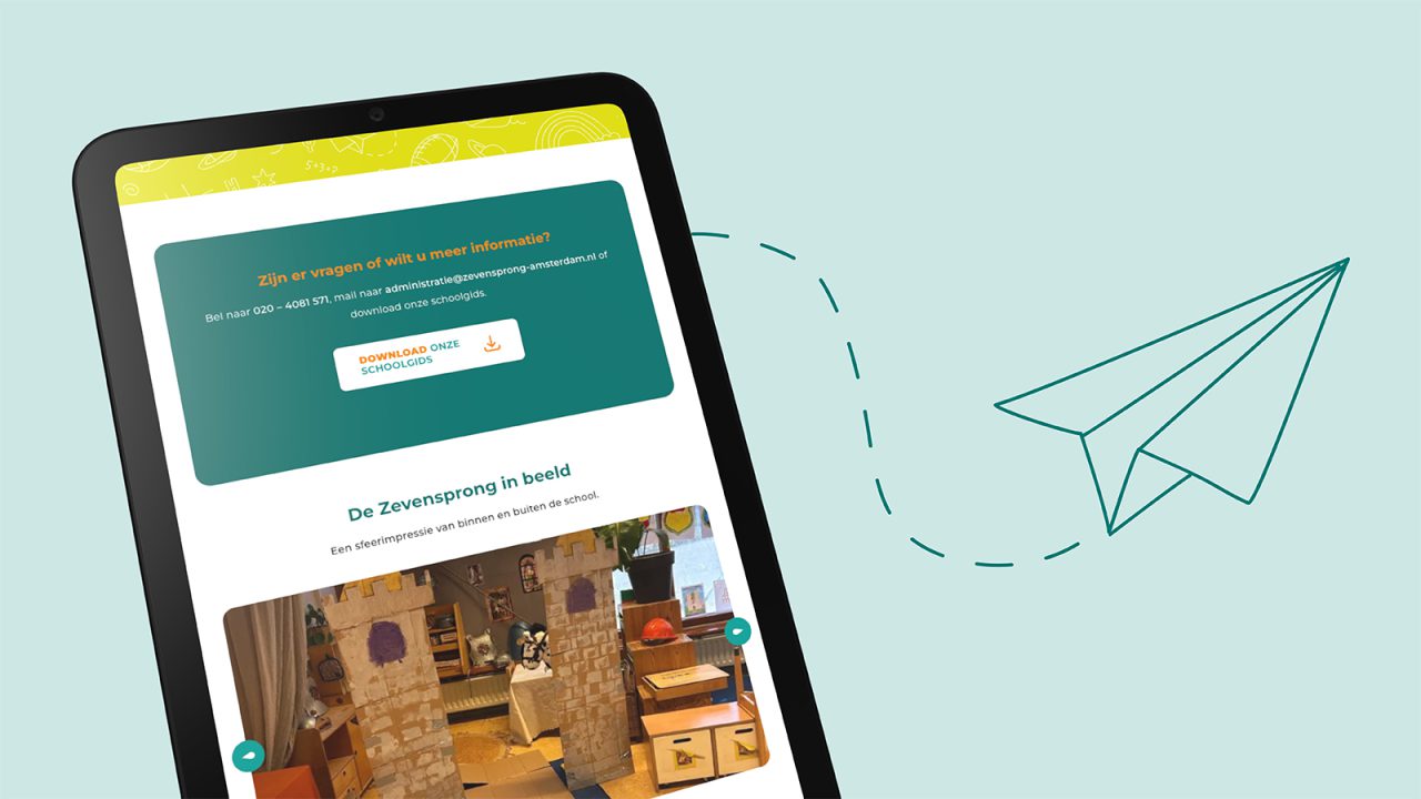 We ontwikkelden een frisse en gebruiksvriendelijke website die perfect aansluit bij de identiteit van De Zevensprong. Korte, krachtige teksten maken de visie van de school meteen duidelijk. Beelden, animaties en een logische structuur zorgen ervoor dat de site niet alleen informatief is, maar ook uitnodigt om verder te ontdekken. Nog maar net na de lancering stroomden de eerste aanmeldingen al binnen.